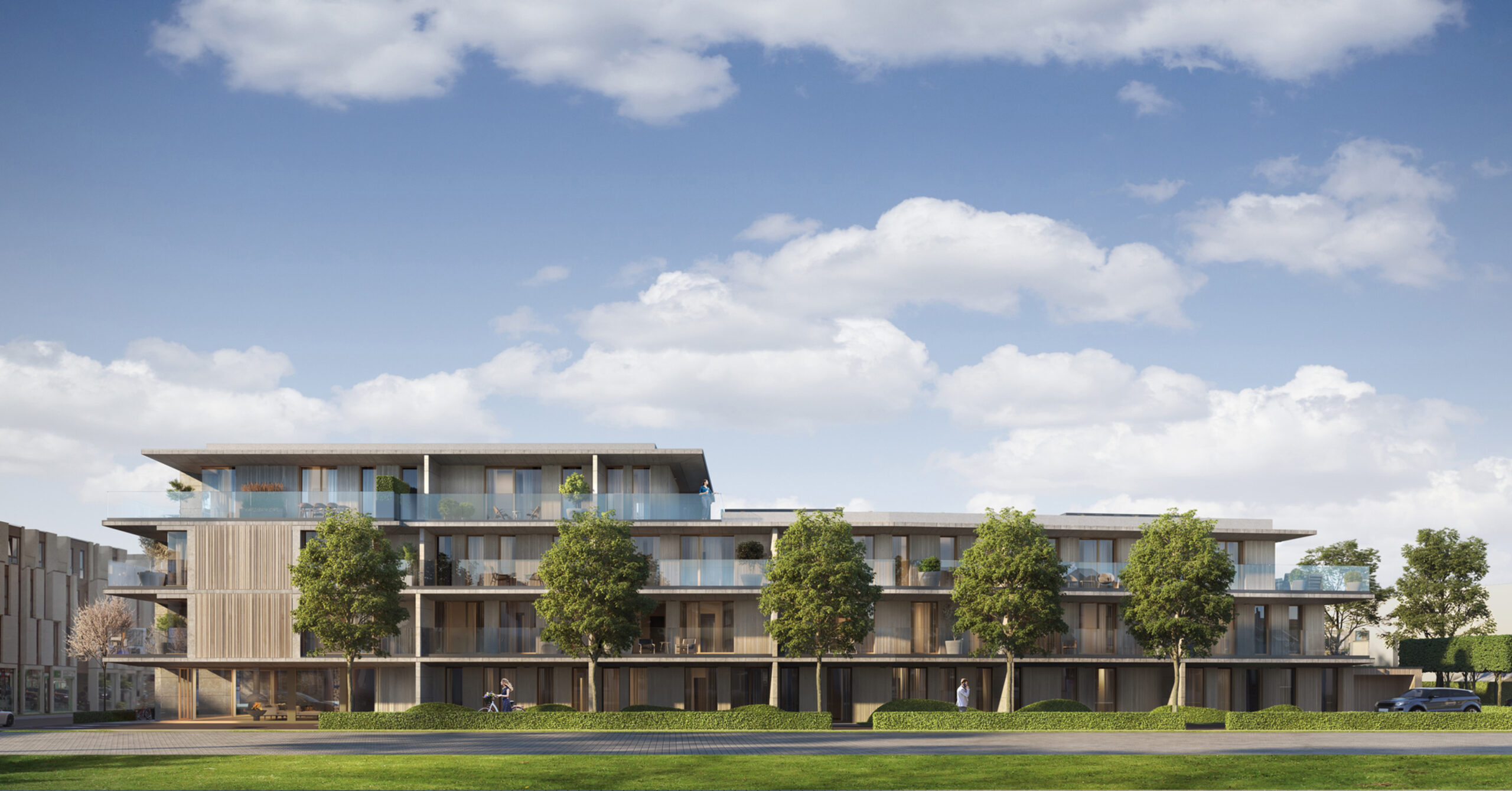 Levensbestendig wonen in het teken van jouw comfort! | De flats bezitten ruime, diepe en onderhoudsvriendelijke terrassen, die gedeeltelijk inpandig zijn. Vanop je beschutte terras haal je dus zowel in de zomer als in de winter een frisse neus of pik je een streepje zonlicht mee. Heel wat appartementen beschikken over een terras aan de west- én de oostkant. Zo wordt de tijd dat je van de zon kan genieten, aanzienlijk langer. Vanop de terrassen aan de westzijde van het gebouw kijk je uit op de prachtige binnentuin. De appartementen op het gelijkvloers beschikken over een extra diep terras. | In de appartementen van THB209 staat alles in het teken van een optimale leefkwaliteit. Het betreft levensbestendige woningen, wat betekent dat je hier tot op hoge leeftijd probleemloos en in alle comfort kan verblijven. Dat realiseren we onder andere door de woningen zo drempelloos mogelijk te maken. Een optimale toegankelijkheid is het resultaat. Je kan kiezen voor extra brede deuren, via het drempelloze schuifraam naar het terras wandelen of in de douche stappen: het gebeurt hier allemaal zonder opstapjes of andere hindernissen. Ook de ruime liften dragen bij aan de comfortabele toegankelijkheid van het gebouw.